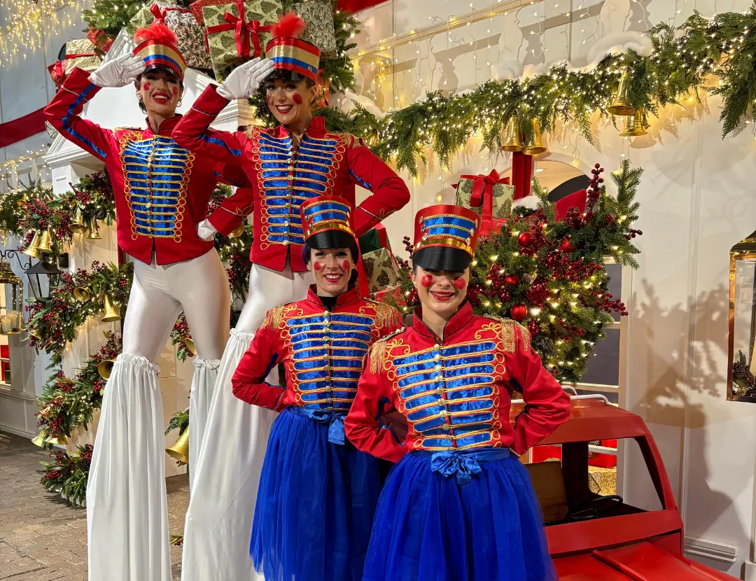Towering and theatrical, our stilt walkers; mystical beings, Nutcrackers, and Royal Guards, bring interactive charm and visual impact to parades, parties, and themed events.
